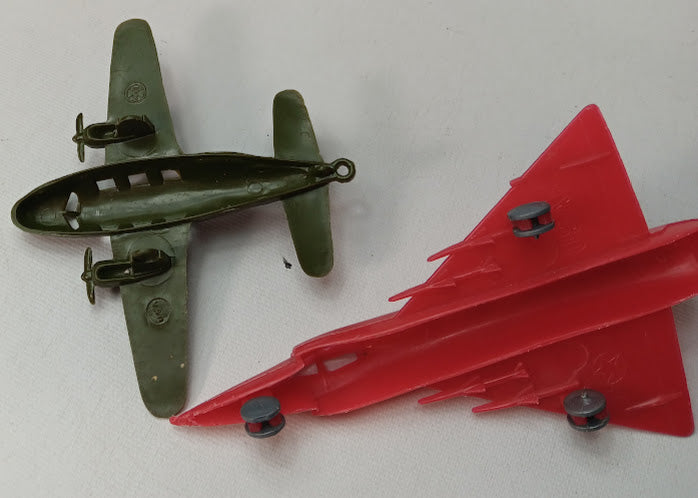 Lot of 2 small 3-5" plastic aircraft. 1 is Marx (Army Green one)