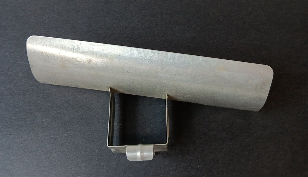 Marx tractor original shovel scraper part. Aluminum toy plow accessory. Slots for installation into the Tractor radiator