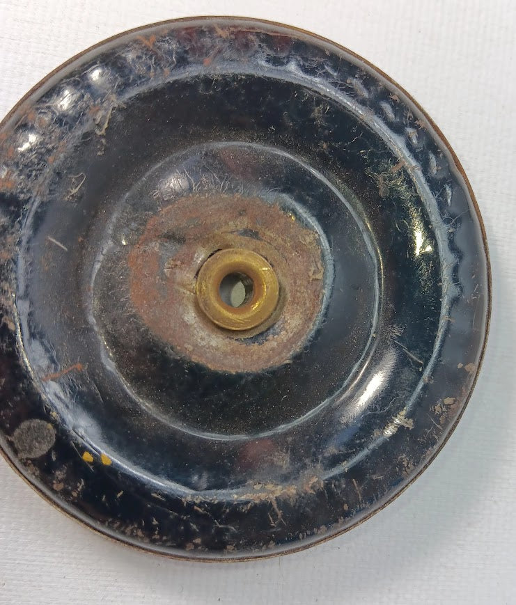 Marx Willy's Jeep Original tin wheel 2-6/8". This wheel will need some work as the axle whole has been damaged. Great for completing a toy or as a repair project. Please check out picture before ordering. These are sold as is. Original