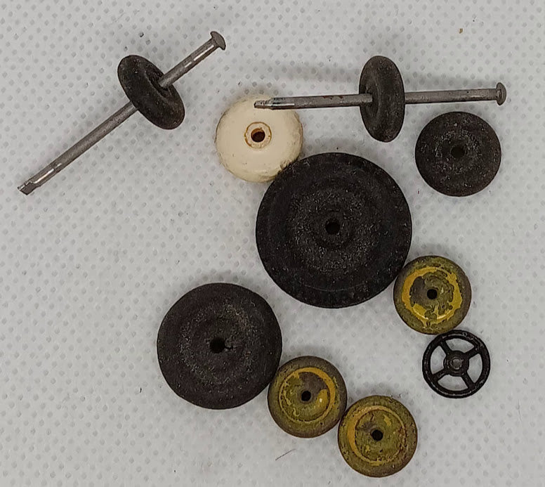 Large lot of original toy wheels and hubs. Various makes and sizes. As is condition original. Please check out picture before ordering. These are sold as is. Original