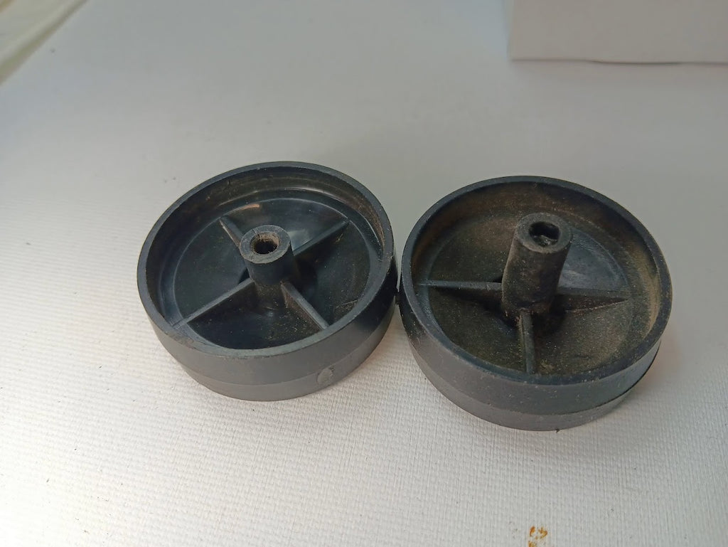 2" Marx tractor #5 original wheels : Lot of 2  Set of two only.    One has a short axle stem and the other is missing the silver center paint.    Please check out picture before ordering.  These are sold as is.  Original