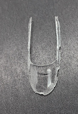 Replacement windshield for slot car racer, 1-1/2 in. long x 5/8 in. width on the bottom, rounded front