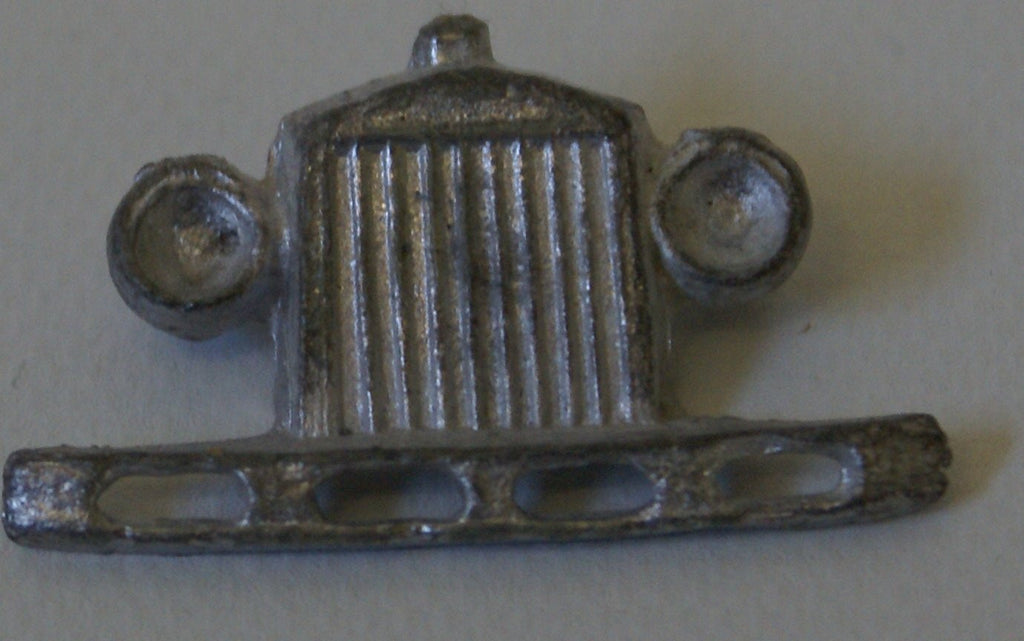 Tootsie Toy Die cast headlight and bumper. Grill is 1-1/4" Height is 6/8"