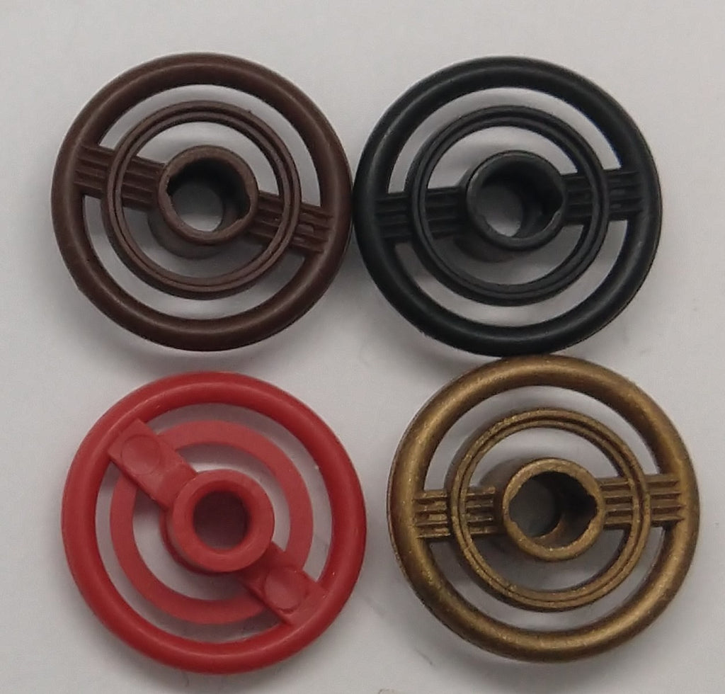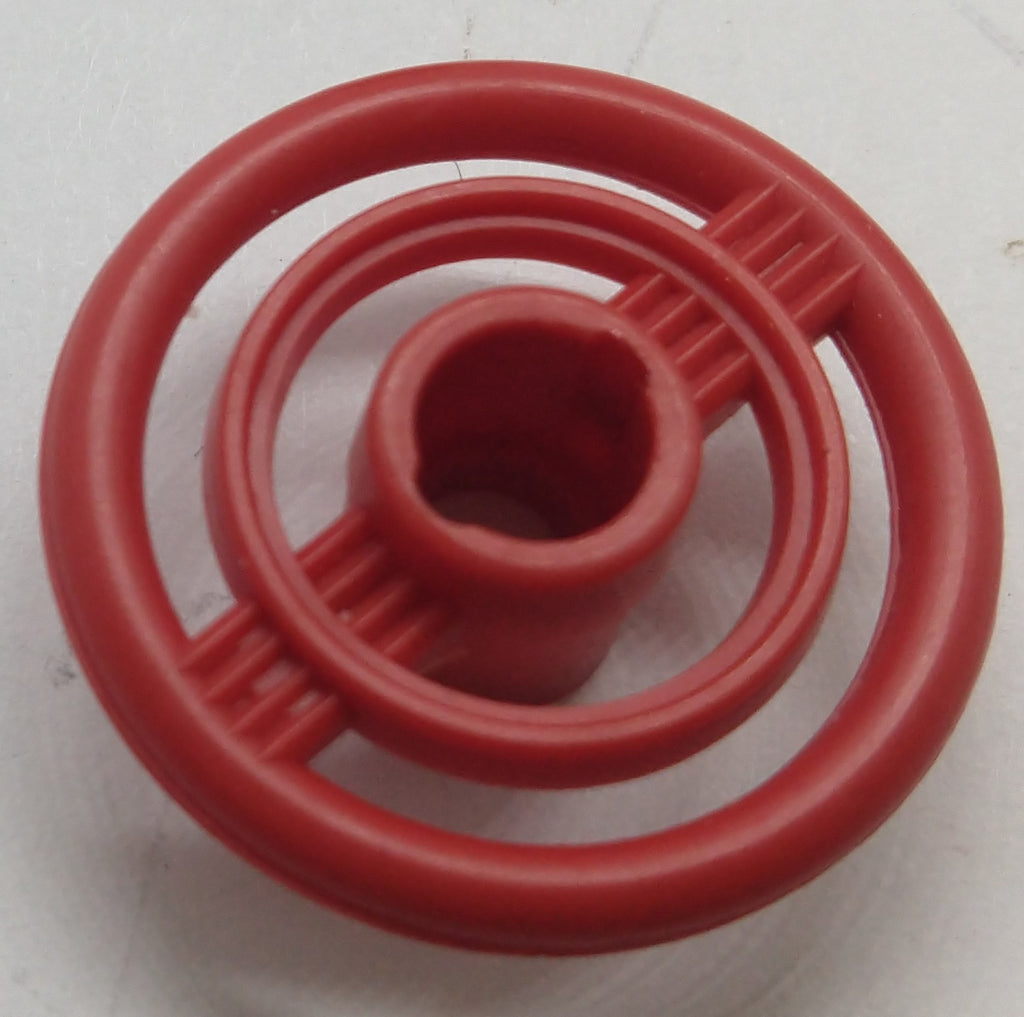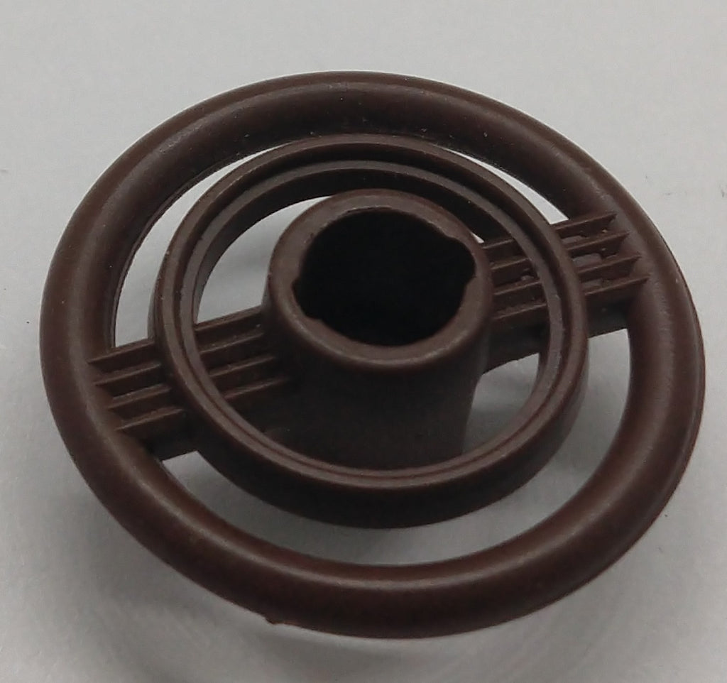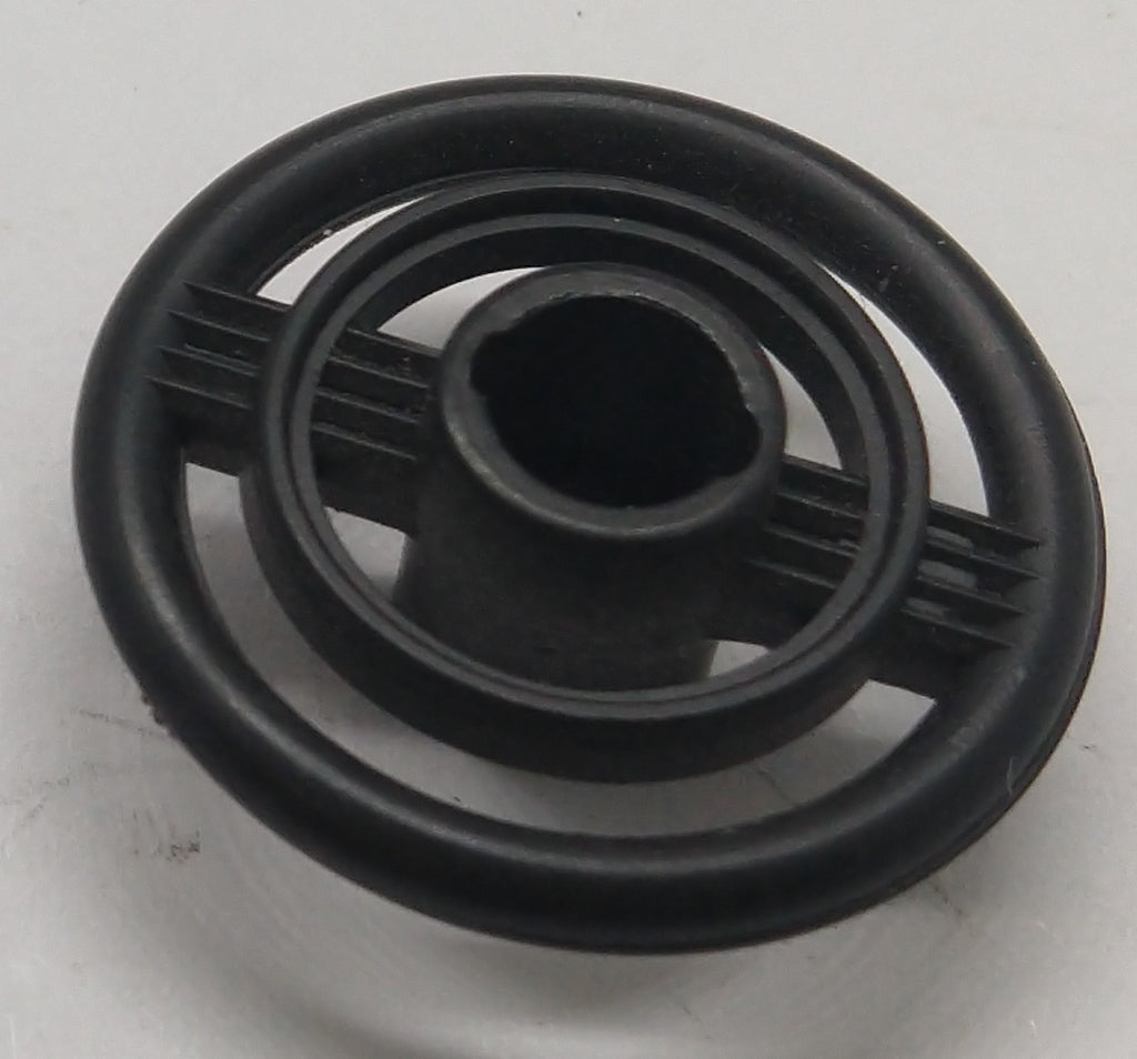 Steering wheel for Schuco 4000-series. Black. Push-fit short shaft 9.5mm or .37". Original old stock. Measurements 0.9" or 22.8mm Axle hole is 0.14" or 3.7mm