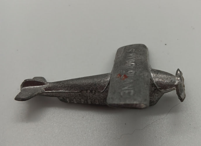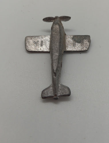 Cast Toy US Hydroplane 2" Original condition with YI I4? on the underneath of the wings. Probably 1940's but uncertain. There is a small spec of red paint on the top wing, otherwise she's ready to fly.