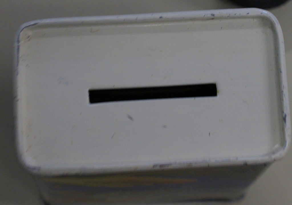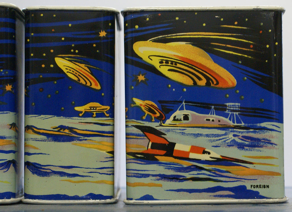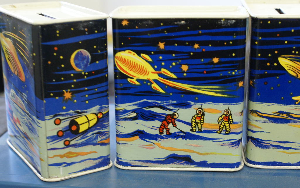 Photo shows the images on each side of the bank diarama. This is a great piece for any space enthuisiast Bank dimensions ; 3 x 1-3/4 x 4" They come complete with a key