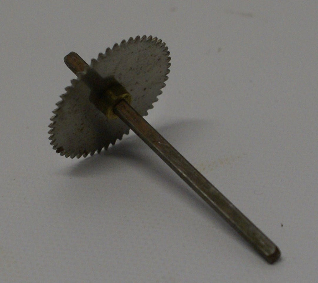 Toy replacement square axle for windup with gear.1" Diameter steel tooth gear.